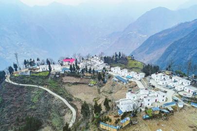 高山之上,雷波县唯一尚未通公路的拉咪乡阿合哈洛村,通村公路建设已推进27.5公里,最后2公里只待冰雪融化后即可打通。绝壁蜿蜒间,雷波县簸箕梁子乡觉普村的通村公路,突破1100多米的海拔落差,为村民脱贫奔康打开了新天地……