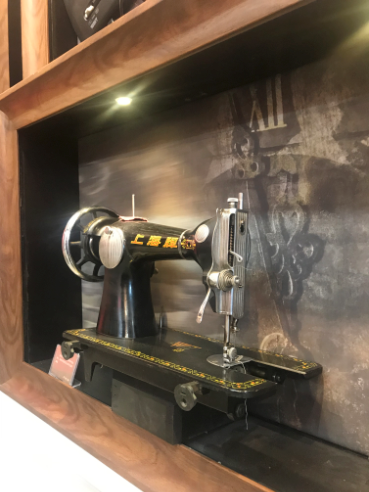 △小院议事厅里,陈列着社区居民们自发捐赠的老物件,缝纫机、黑白电视机、纪念章等,这些物品是改革开放40年的生动写照。(央视记者荆伟拍摄)