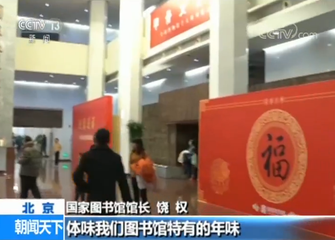 国家图书馆馆长 饶权:我们的所有阅览室在春节期间都是正常开放的,我们还举办了一系列年味很浓的系列活动,也希望读者有时间的话,能到图书馆来体味我们图书馆特有的年味。