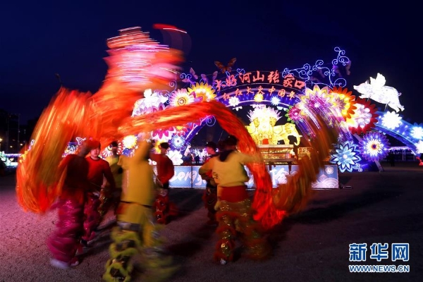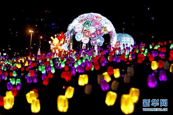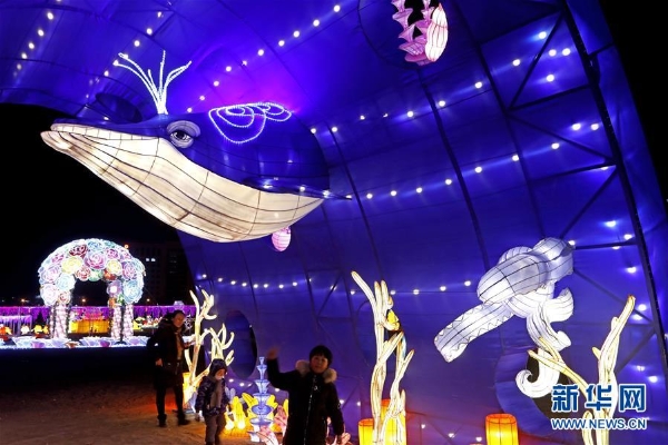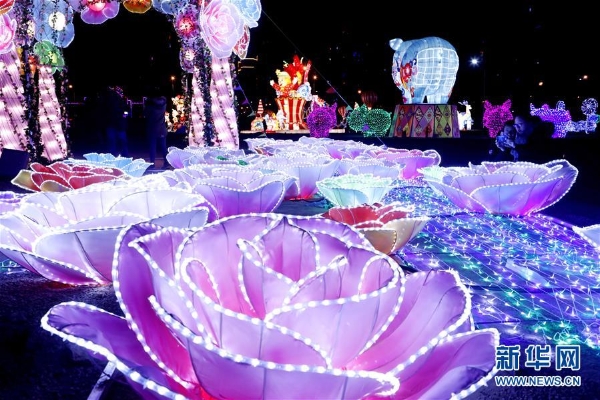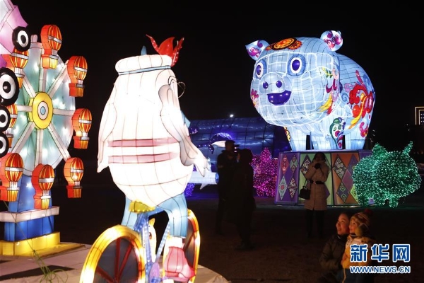 这是2月2日在张家口新春灯会上拍摄的灯组。 当日,2019张家口新春灯会在河北张家口市经济开发区老鸦庄镇亮灯,百余个大型灯组璀璨夺目。(新华社发 武殿森/摄)