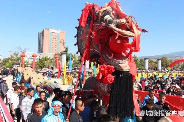 大年初一,有龙狮之乡美誉的施甸县城区广场热闹非凡,来自该县仁和镇和甸阳镇的五条长龙、九条小滚龙和六架狮子齐聚施甸县城闹新春,仁和镇热水塘抬阁和何元乡高跷队齐助阵,为施甸人民献上新春大礼包。吸引了上万名市民前来广场争睹龙狮竞相炫技风采。
