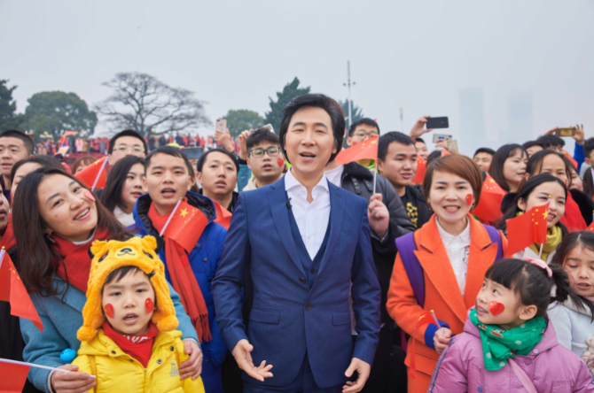歌唱家廖昌永人群中放声高歌 祝福祖国!