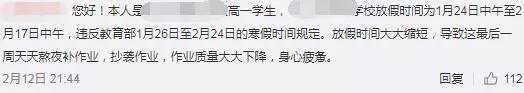 与此同时,记者也陆续接到十几条后台留言,询问高中开学时间,以及提出对寒假时间较短的看法: