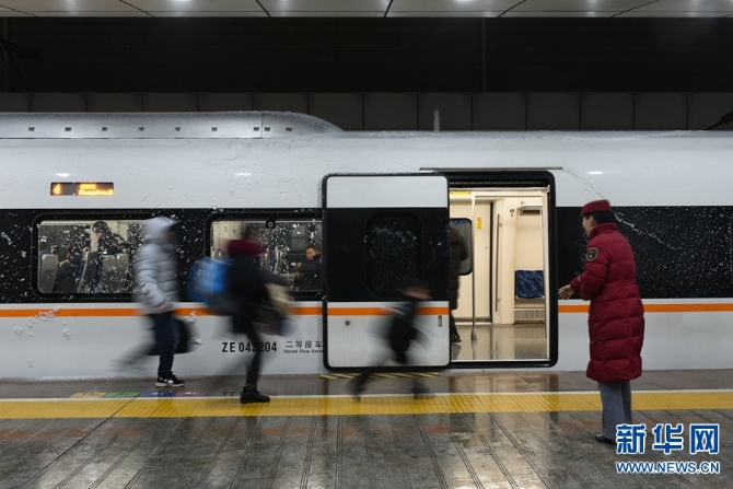 客流出行高峰遇到强降雪天气,郑州局管内各大火车站迅速启动应急预案,组织党员服务队及时清扫积雪,铺设地毯、防滑草垫和安全提示牌等,加密进站口、售票厅、站台、地道、天桥、台阶、电梯等客流密集区域防滑防护措施,增加站台盲道、白色安全线等湿滑位置广播提示和人工引导,确保旅客安全乘降。