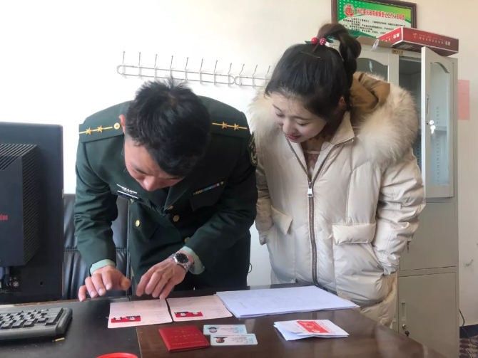 边防军人不易,边防军人的军婚更加不易。从烟台到岗巴,从祖国的东边到祖国的西边,4000多公里的路程、高原反应、对陌生环境的不适应都没有击退这个倔强的姑娘。过年期间,岗巴县民政局的工作人员已经放假,驻地政府在得知新娘阎晓宁不远万里来到岗巴的事情后,经过与营里协商,特事特办,民政局为岗巴营这对新人开门办理结婚证。“请在这里签字”,新人赵伟和阎晓宁拿到了他们的结婚证,正式步入婚姻的殿堂。