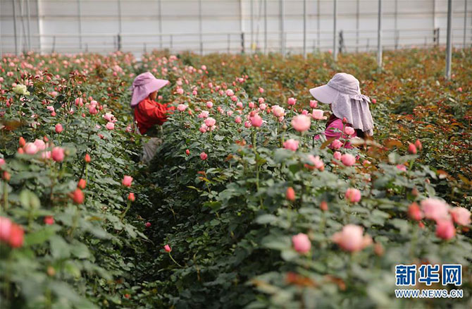 2月21日,工人在云南省红河哈尼族彝族自治州弥勒市一个鲜花大棚里采摘花卉。 早春时节,各地农民开始积极投入到农事劳动中,田间地头到处是一派繁忙景象。 新华社发(梁志强 /摄)