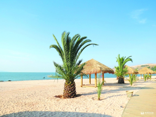 若是夏天,来这里寻觅一丝清凉,配上柔软的沙滩、伞一样的棕榈树、戴着“草帽”的凉亭和那最美的晚霞和璀璨的星空,看天蓝水碧、绿树成荫,倾听鸟语、闻闻花香,怎一个惬意了得?