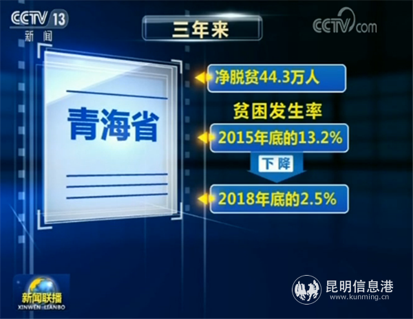 三年来,青海省净脱贫44.3万人,贫困发生率从2015年底的13.2%下降到去年底的2.5%。
