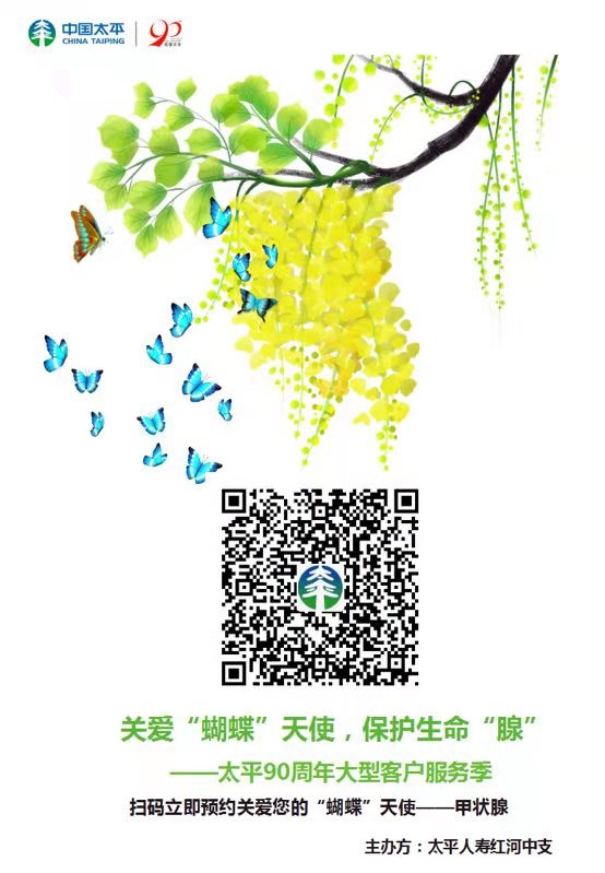 据悉,太平人寿2018年理赔报告数据显示,太平人寿80%理赔案件属于疾病类理赔。在治疗费用高昂的重大疾病赔付中,癌症首当其冲。癌症中,甲状腺癌单项赔付占比高达22.51%,再者,甲状腺癌是云南当地最常见理赔疾病。2019年,太平人寿90周年大型客户服务季之际,太平人寿红河中支全面开展“关爱‘蝴蝶天使’,保护生命‘腺’”主题甲状腺公益检测,让更多红河人提前关注甲状腺,尽享健康生活。