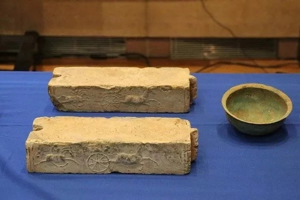 △ 武士像浮雕:1994年,王处直墓的十块浮雕被盗走贩卖至香港。2000年,一块武士像浮雕出现在美国纽约的拍卖会上。经多方裁决,美国司法部门将浮雕无偿归还中国政府。