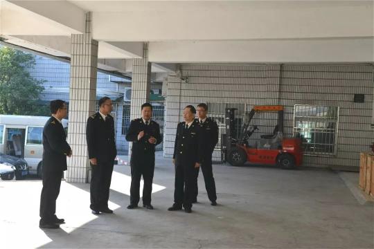 冯庆坚(右二)到韶关跨境电商清关服务中心调研