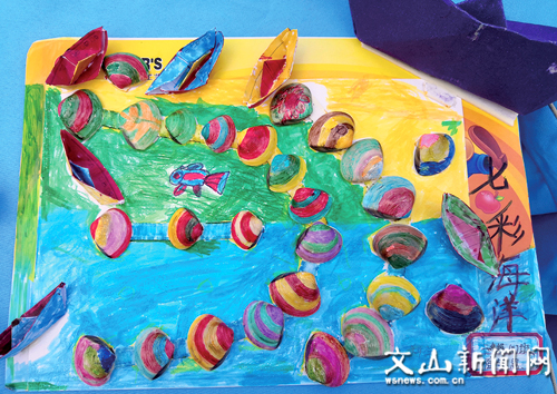 “我做的是一幅用开心果壳、绿豆、瓜子壳拼成的画,我之前在电视上看到过,这次寒假作业就做了,是在爸爸妈妈的帮助下完成的,很有成就感。”