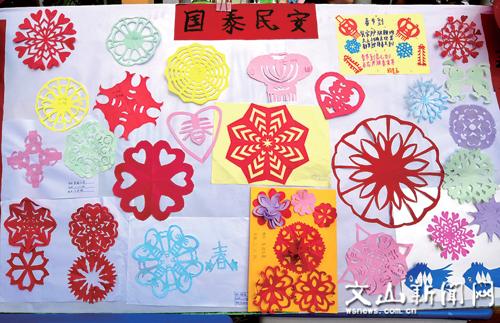 “我做的是用红包拼成的灯笼,因为过年收到了红包,灯笼也是非常喜庆,就和爸爸妈妈一起完成了。”