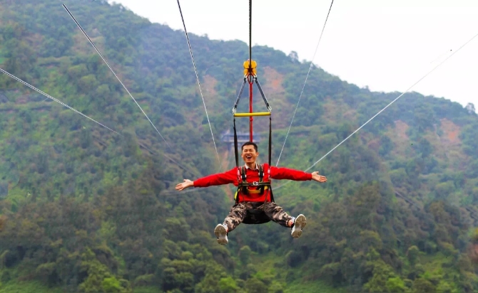 从游客和记者的体验感受,滑索有着较好的安全保护措施,行驶平稳,但由于有一定的速度感和落差感,所以滑行过程中感觉刺激。