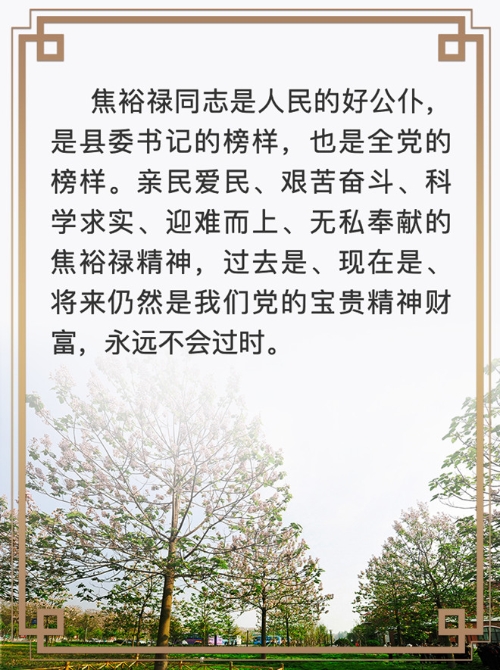 2014年3月17日至18日,习近平总书记调研指导兰考县党的群众路线教育实践活动,在河南省兰考县委常委扩大会议上发表讲话,强调大力学习弘扬焦裕禄精神,继续推动教育实践活动取得实效,并对领导干部提出具体要求。