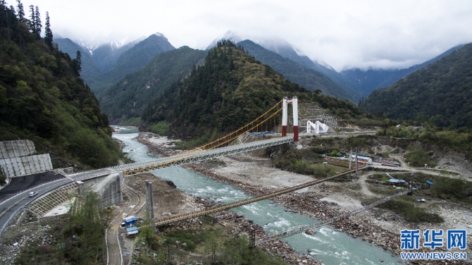 新建的通麦特大桥(2016年3月29日摄)。新华社记者 普布扎西 摄