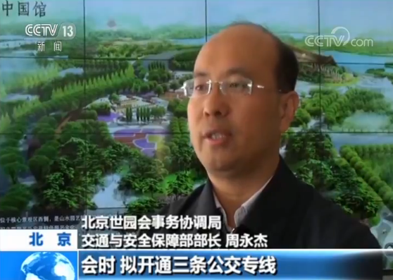 北京世园会事务协调局交通与安全保障部部长 周永杰:实际上我们也是更提倡广大的游客乘坐公共交通出行,一是游客可以乘坐S2线到达延庆火车站,(乘坐)免费的接驳班车可以到达世园会的停车场。会时,拟开通三条公交专线分别从海淀、石景山、昌平直达园区。