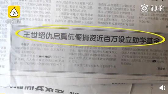 据了解,从2010年起,王世绍老师每年都资助仲英学院的贫困学生,帮助他们完成学业。到2017年,老人已经资助了20多名贫困生。2017年,老人设立王世绍助学金,用来帮助家庭经济特别困难但品学兼优的学生顺利完成学业。记者了解到,两位老人还拿出50万捐赠给西安交大教育基金会,用于奖励仲英书院学习成绩优秀的学生。2017年至2021年,每年10万元。2018年资助了12名学生,每人5000元。
