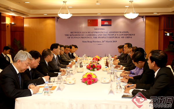 陈豪还与柬商务部大臣班苏萨、新闻部大臣乔干那烈、暹粒省理事会主席翁恒进行了会谈,在深化人员往来、经贸投资、基础设施建设、旅游文化、教育医疗等合作方面达成广泛共识。陈豪表示,当“吴哥的微笑”碰上“七彩云南”,笑容必将更加灿烂。