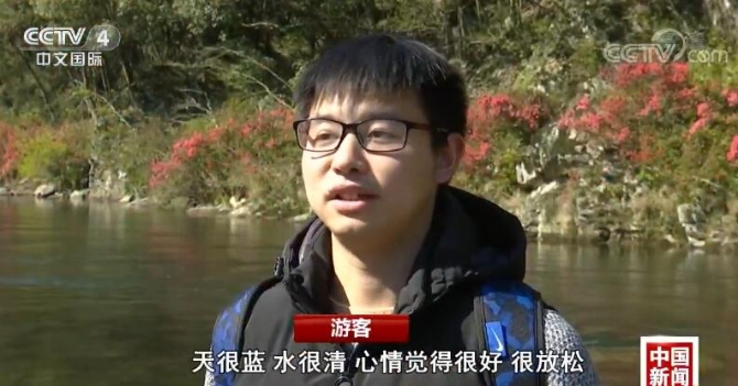 游客:这边的环境也特别美,天很蓝、水很清,心情觉得很好、很放松。