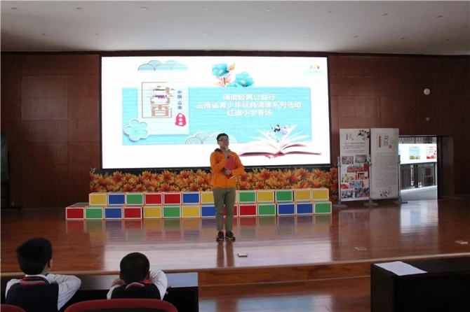 4月11日下午,由云南省关心下一代工作委员会指导,云南省妇联、云南省红十字备灾救灾中心、昆明市委网信办、昆明市文明办、昆明市妇联、云南儿童网联合主办,昆明市青少年语言文字科普教育基地协办的书香彩云南·诵读经典公益行——云南省青少年经典诵读系列活动以“从小学用典”为主题走入昆明市五华区红旗小学,和同学们一起学习新思想,做好接班人。