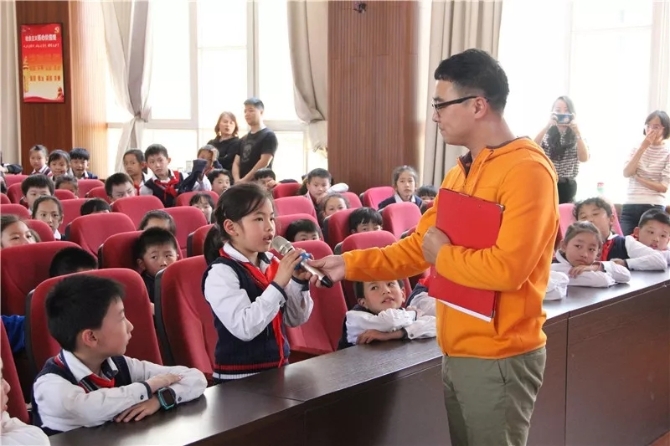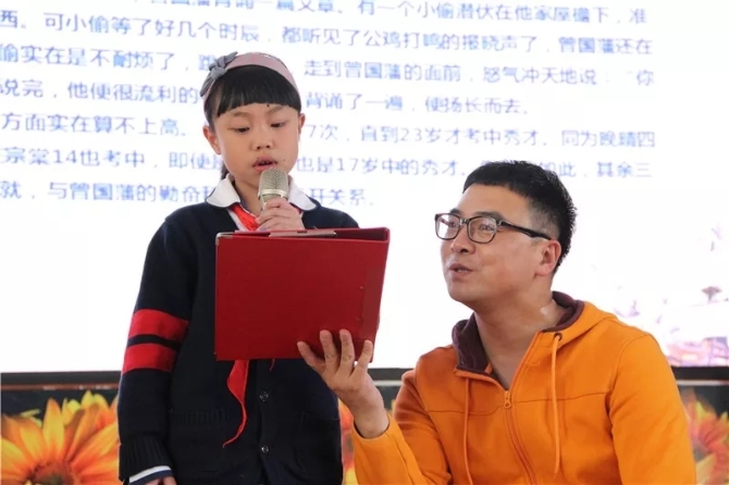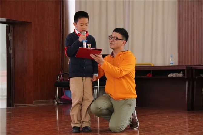 为了加深同学们的印象,在石头哥哥的邀请下,同学们阐述自己聆听诵读的心得,更纷纷走上台前,进行分段朗诵。
