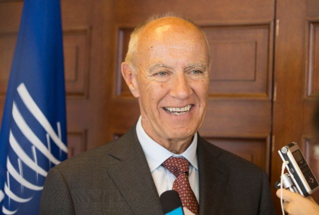 图为4月8日,世界知识产权组织总干事弗朗西斯·高锐在瑞士日内瓦接受新华社记者采访。(新华社记者徐金泉摄)