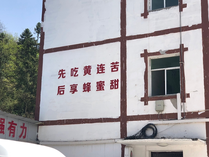 △“先吃黄连苦,后享蜂蜜甜”。在石柱县的大街小巷、田间地头经常能见到这幅标语。2018年,石柱县建档立卡贫困群众人均可支配收入达到8903元,较2014年增长1.98倍。(央视记者邓丽娟拍摄)