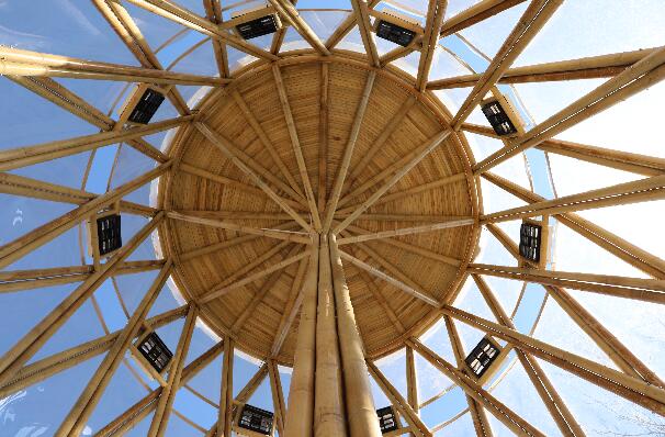 竹材在建筑领域的应用在未来具有广阔的市场前景。国际竹藤组织园的“竹之眼”展馆主体部分采用5000多根毛竹搭建而成,单拱跨度达到32米,是目前中国北方地区建造的跨度最大的圆竹结构场馆,可以在世界各地广泛推广。