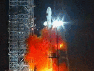 长征三号乙运载火箭点火时刻(史啸 摄)