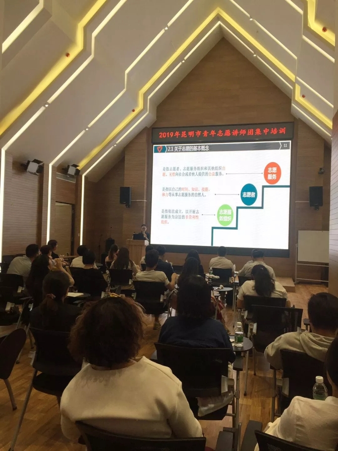 为满足社会发展日益增长的多元化、专业化志愿服务需求,不断充实青年志愿讲师的专业力量,进一步推动昆明市青年志愿者行动创新发展,根据团中央办公厅下发的《关于加强青年志愿服务培训工作的方案》及《昆明共青团2019年工作要点》的要求,4月20日,共青团昆明市委、昆明市青年志愿者服务指导中心在官渡区社会组织孵化基地举行“昆明市青年志愿讲师团成立仪式暨2019年昆明市青年志愿讲师团集中培训”,来自昆明市各社会组织负责人及60余名热心公益服务的青年志愿讲师团出席参加活动。