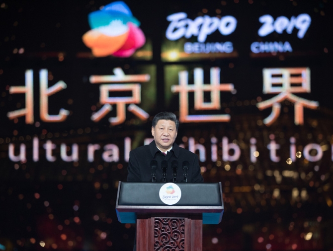 习近平宣布,2019年中国北京世界园艺博览会开幕。