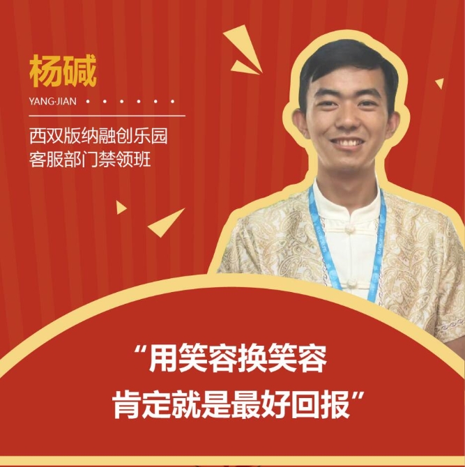 A:在融创乐园工作快四年,我很庆幸自己当初选择来到这里,平台大而且发展空间很多,公司的制度也很好,我很喜欢这份工作。我觉得门禁检查是很重要的一份工作,我们可以说是公司的第一门面,游客入园首先就会看到我们。所以每天我们既要保持良好的精神面貌,还要要求自己要足够耐心且细心,让他们感受到我们无比的关怀,给他们留下良好的印象。只有这样,才能不辜负他们的好心情。