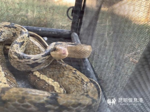 民警将蛇带回单位后,经科普比对及向野生动物专家咨询,该蛇为国家“三有”保护动物黑眉锦蛇,体重800g,身长约1.5米。经检查,无外伤。目前,民警已将其带到偏远野外放归大自然。