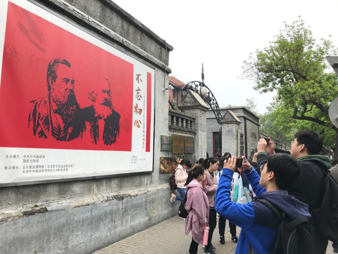 △这是4月27日青年观众参观北京新文化运动纪念馆。该纪念馆馆址即北大红楼。当年,北大学生就是从北大红楼出发前往天安门。(央视记者拍摄)