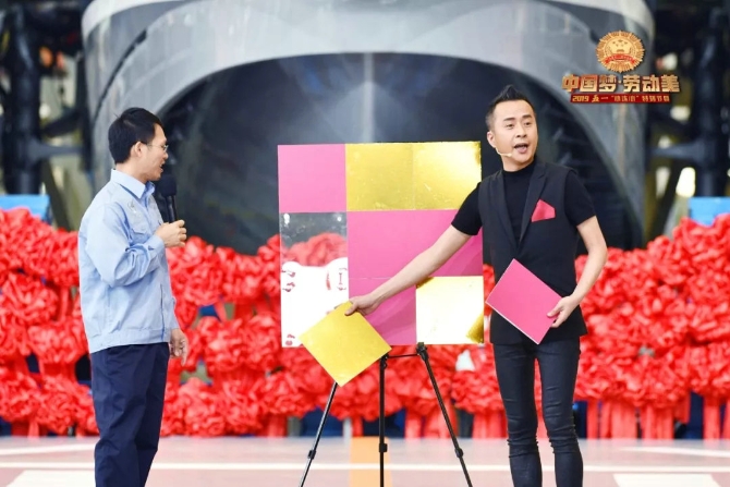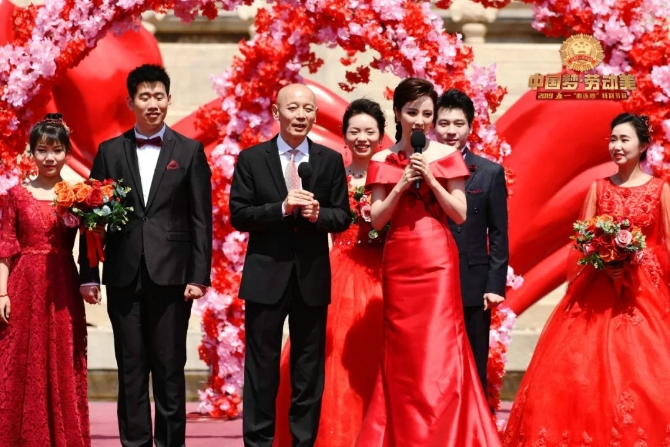 演出现场,11对即将走进婚姻殿堂、活跃在生产第一线的青年职工迎来了一位特殊的证婚人——葛优。还有多组全国劳模家庭与现场嘉宾进行互动,与观众分享了美丽的劳动者家庭故事。