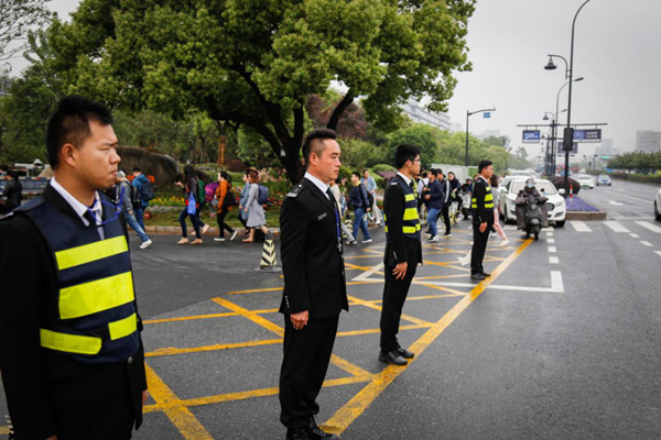 每天早晨9点,北一门安保小哥哥郑长江要说近万次“早上好”。制服笔挺、面带微笑,这对阿里颜值最高的安保团队来说,是标配。