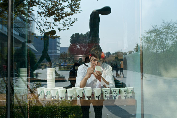 作为园区星巴克的员工,他曾经靠画画“一战成名”。在去年11月11日,他给天猫小二手绘一批“双11特别款咖啡杯”:杯子上配一只天猫,再加上一句鼓励的话,每只猫的表情还不一样。这带给了很多阿里同学鼓励和温暖。