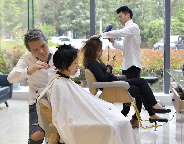 平均每天接客165人,上午11点钟,理发店里的人流就开始多了起来。普通发型师剪头38元,总监58元,不办卡、不推销,听说马云来了也不打折。从满身疲惫进门,到威风凛凛重上战场,通常只需要20分钟。