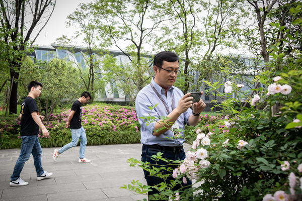 下午1点的花园里,像曲风(花名)那样拿着手机怼着花的人可不少。作为全球化事业部小二,他走过了半个世界,看遍了不少风景。可每次回到园区,他都忍不住“犯花痴”:“阿里园区哪儿都可以改,就是不能删除这块花园。”