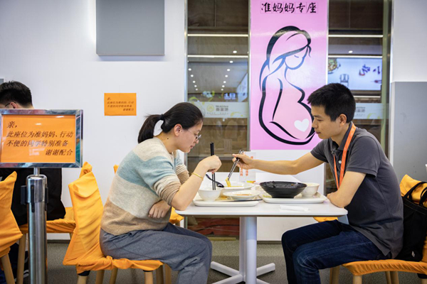 下午五点,陈钦陪着怀孕的妻子坐在食堂准妈妈专座里吃饭。作为阿里云的技术专家,他没法做到时时刻刻照顾着妻子,但只要有机会,哪怕两个人一起吃个饭,都是甜蜜的。
