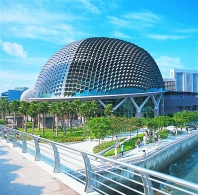 几年前新加坡政府致力于一项打造“花园中的城市”项目,听导游说,你所看到的这个造型奇特的建筑就是其中一部分,它的全称为滨海花园。