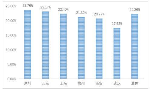 分城市来看,在全国六个受调查城市中,深圳、北京和上海的政策享受效果较好,其中,深圳和北京明显好于总体水平,获得创业税收优惠的企业比重分别为23.76%和23.17%。武汉和西安创业企业税收优惠政策享受效果欠佳,不及总体水平,获得创业税收优惠的企业占比仅为20.77%和17.53%。