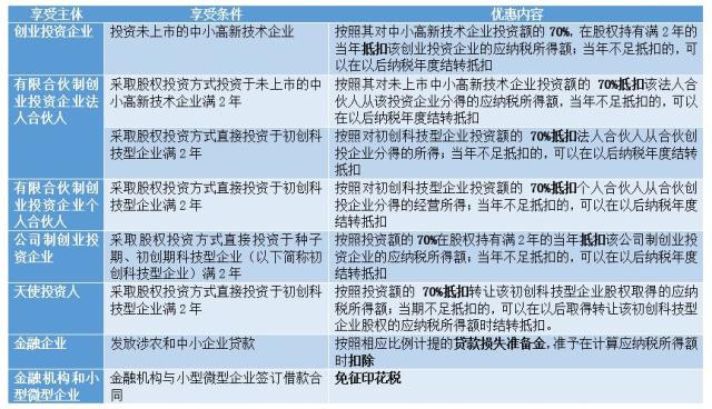 在此背景下,为企业提供资金支持,帮助企业化解融资问题的创投企业、金融机构在企业创业成长初期作用重大。国家为了帮助企业聚集资金,也为创投企业和金融机构制定了专门的税收优惠政策。