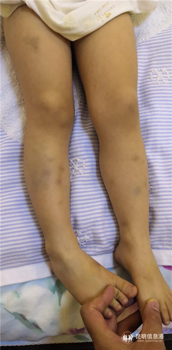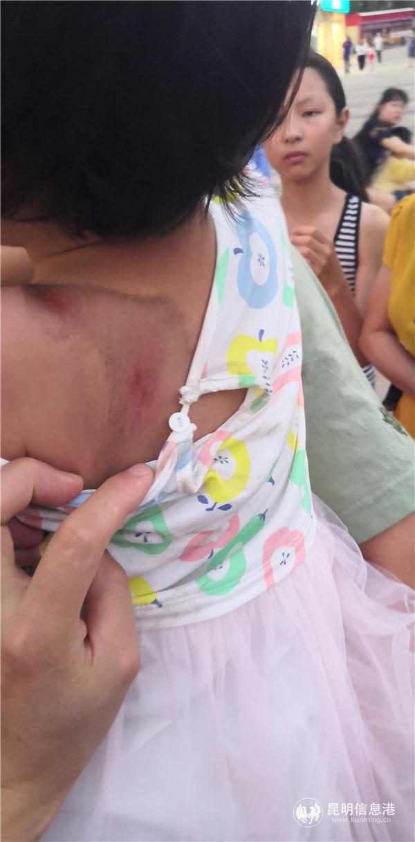 “在现场,就发现孩子右腿不能站立,背部肩部擦伤,身体、腿上有淤青。”随后冯先生带着孩子去了云大医院进行检查,幸运的是检查显示无骨折情况。经过一晚上的观察后,5月20日又进行了复查,内脏未有明显异常,医生答复可以回家观察,冯先生一家才带孩子离开医院。