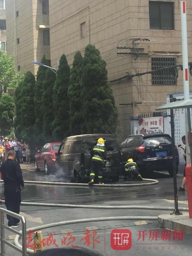 昆明丹霞路红塔组团小区内一辆面包车自燃