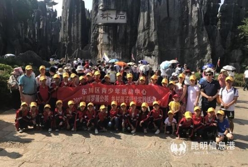 昆明信息港讯 为了关心、关爱农村贫困家庭和留守儿童,发挥青少年活动中心公益性活动的作用。5月17日,东川区青少年活动中心组织三十余名留守儿童到石林开展“圆梦蒲公英 留守儿童研学实践活动”。