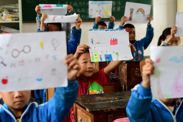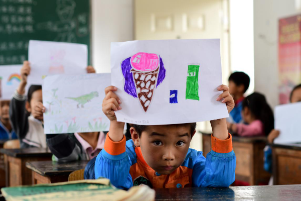 孩子展示心愿画 陈昱州/图