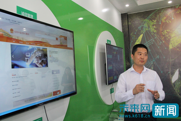 工作人员向记者介绍清镇市诚信管理系统。(未来网记者朱延生 摄)