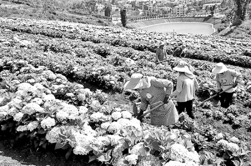 一是以南国山花生态科技园为代表的种植结构调整。通过土地流转,把原传统种植青花、芫荽等施水、施肥量大的作物调整为种植月季、绣球、南半球特色木本花卉等高档木本花卉,打造科研生产及生态农业示范基地。在获得较高经济效益的同时,推进新产品和新技术的开发、应用,探索石漠化荒山植被恢复、生态环境改善和农业产业可持续发展新路径。